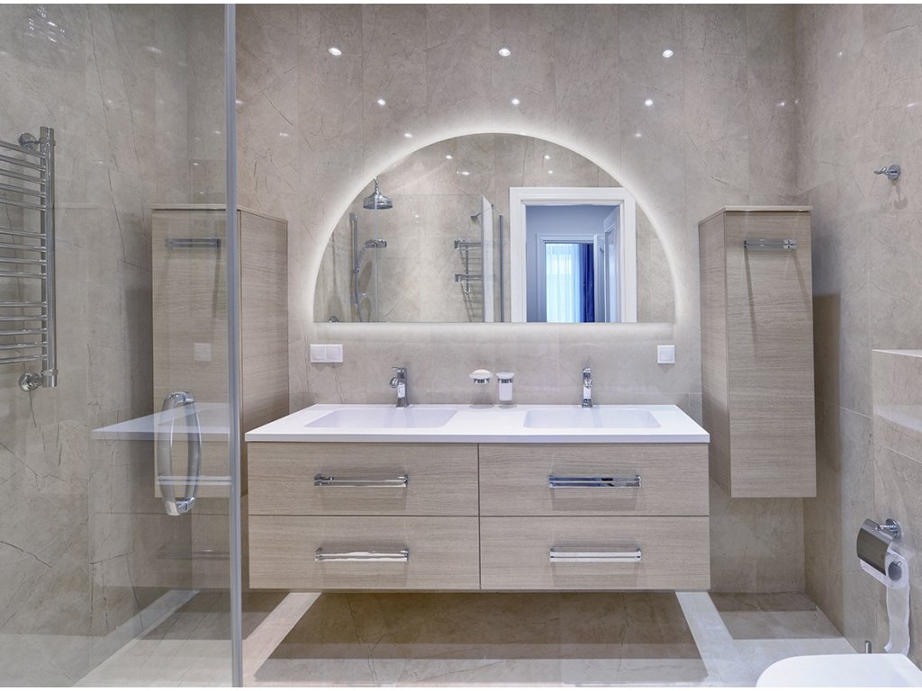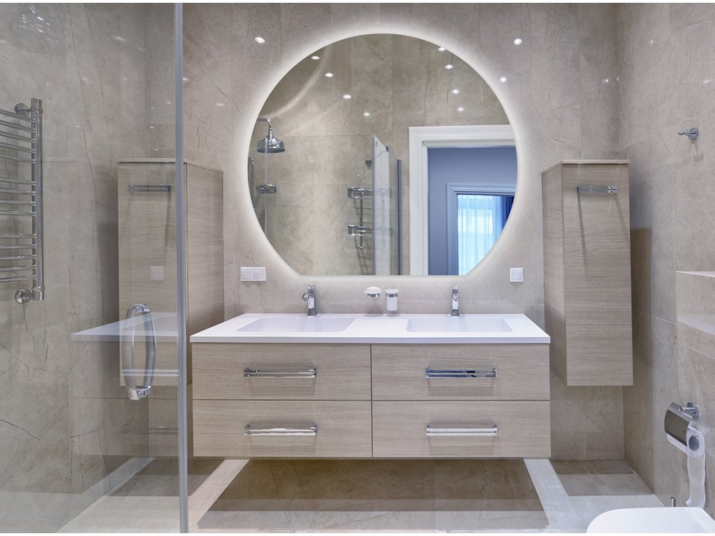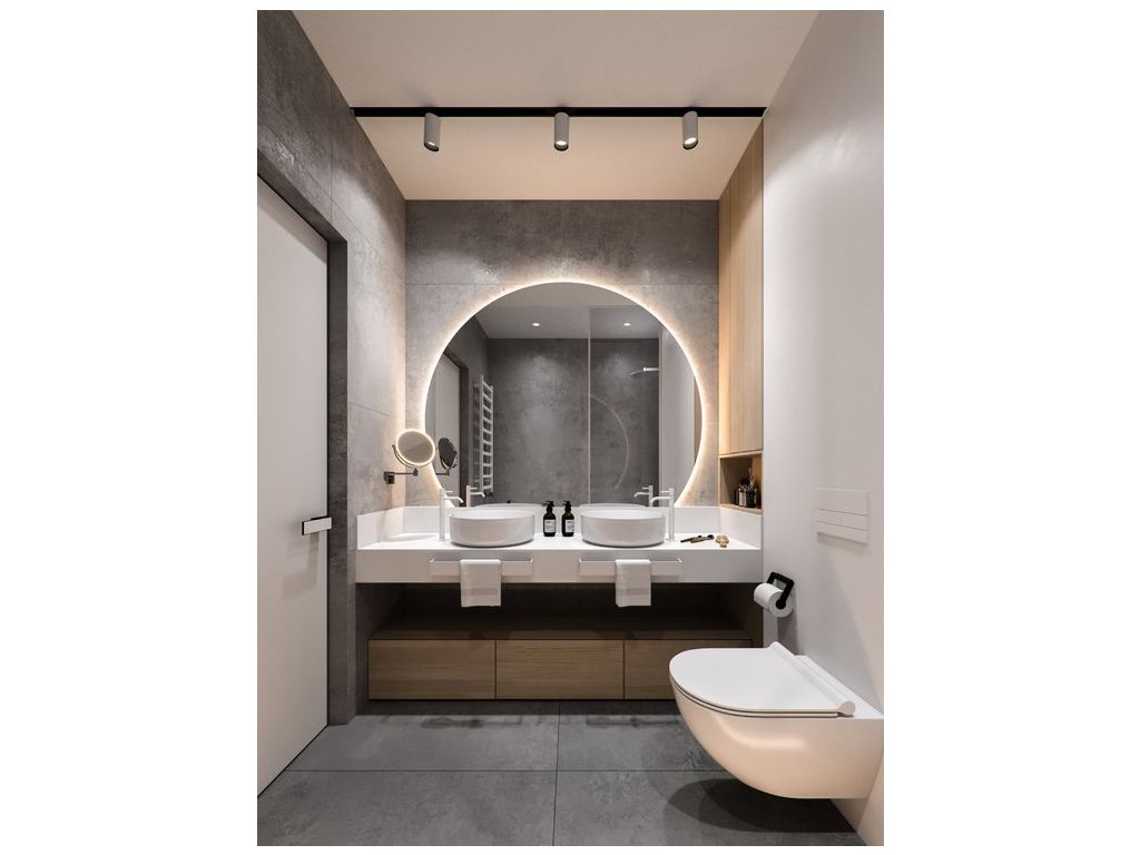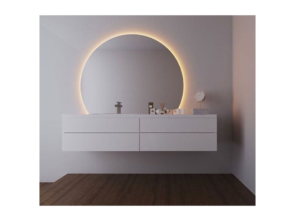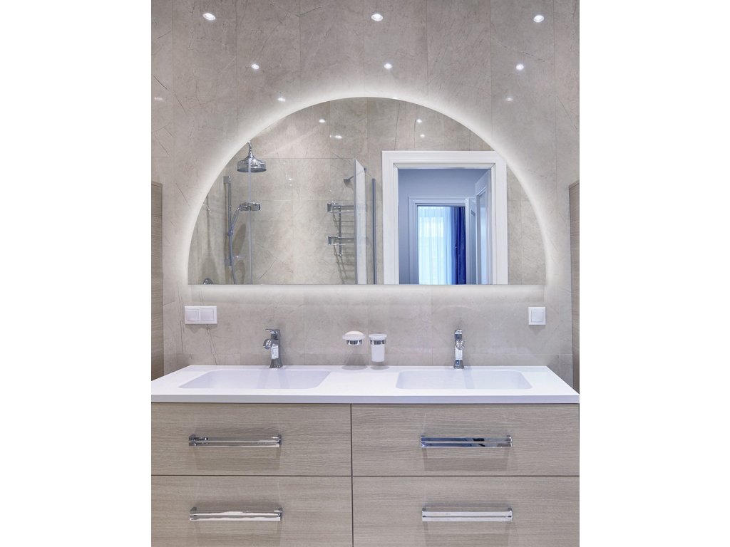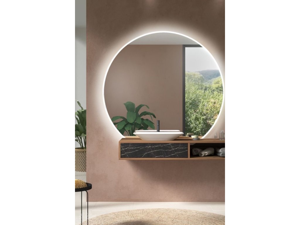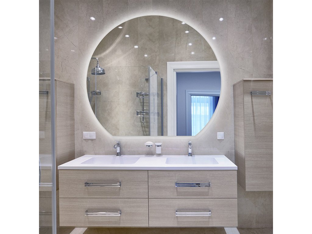 Skvele bude vyzerať najmä v modernej kúpeľni. Ambientné osvetlenie vytvára relaxačnú atmosféru, vďaka ktorej je usporiadanie kúpeľne ešte príjemnejšie. Unikátnym toto zrkadlo robí skosenie na spodnej strane zrkadla ktoré môže zasahovať až do polovice kruhu zrkadla.